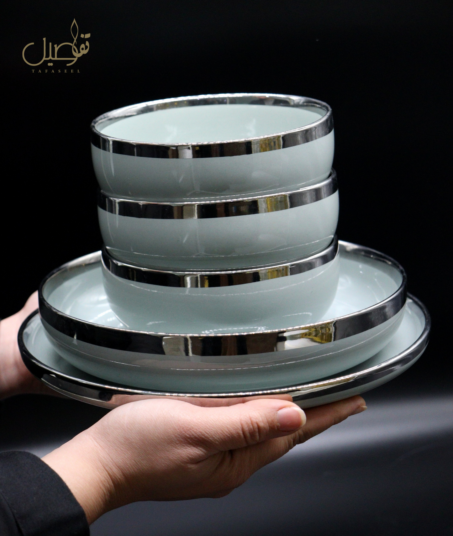 VAISSELLE PORCELAINE GRIS ARGENTE