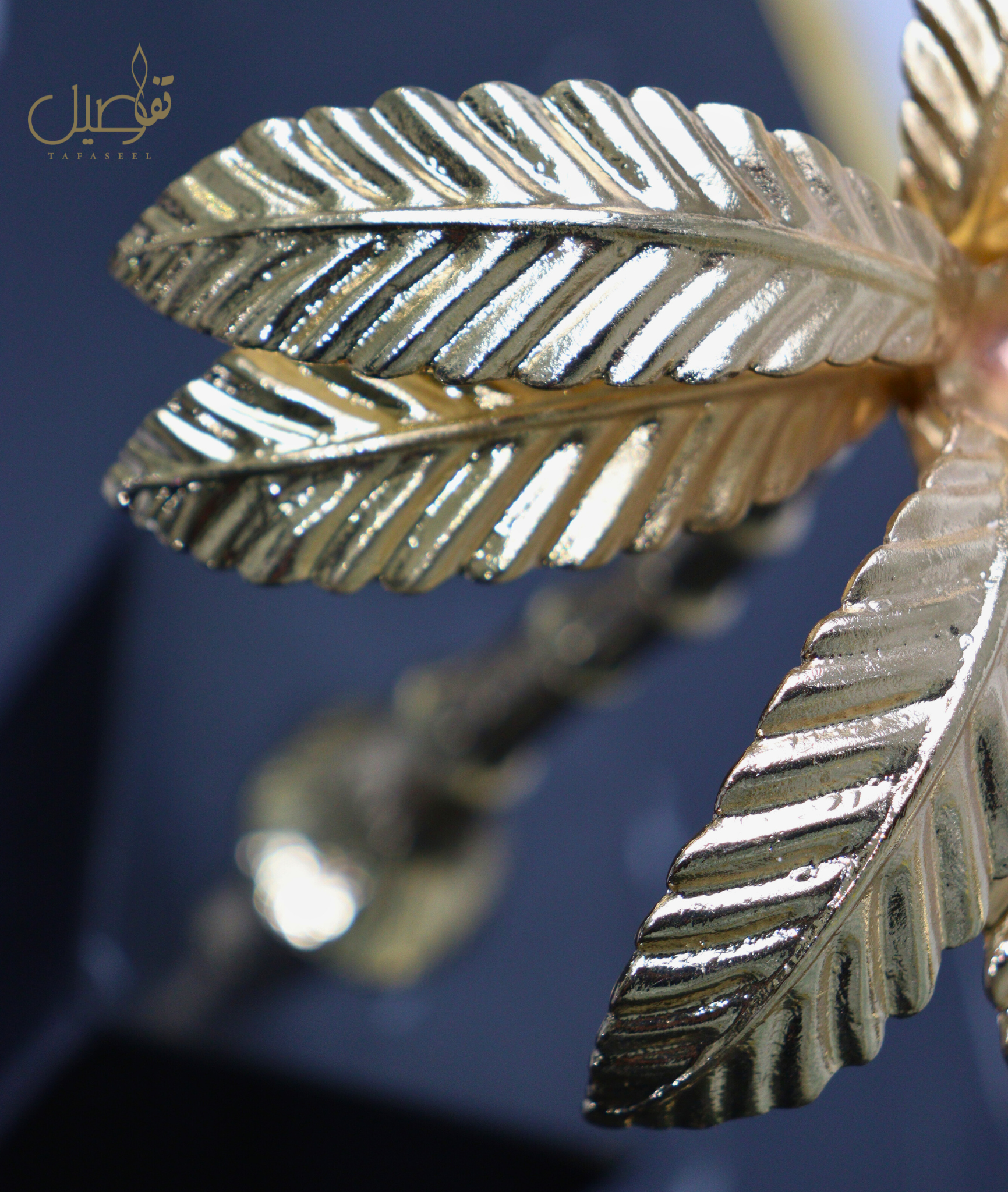 gloire est un palmier en métal doré dominant une base de marbre lourd distinctif qu’ils