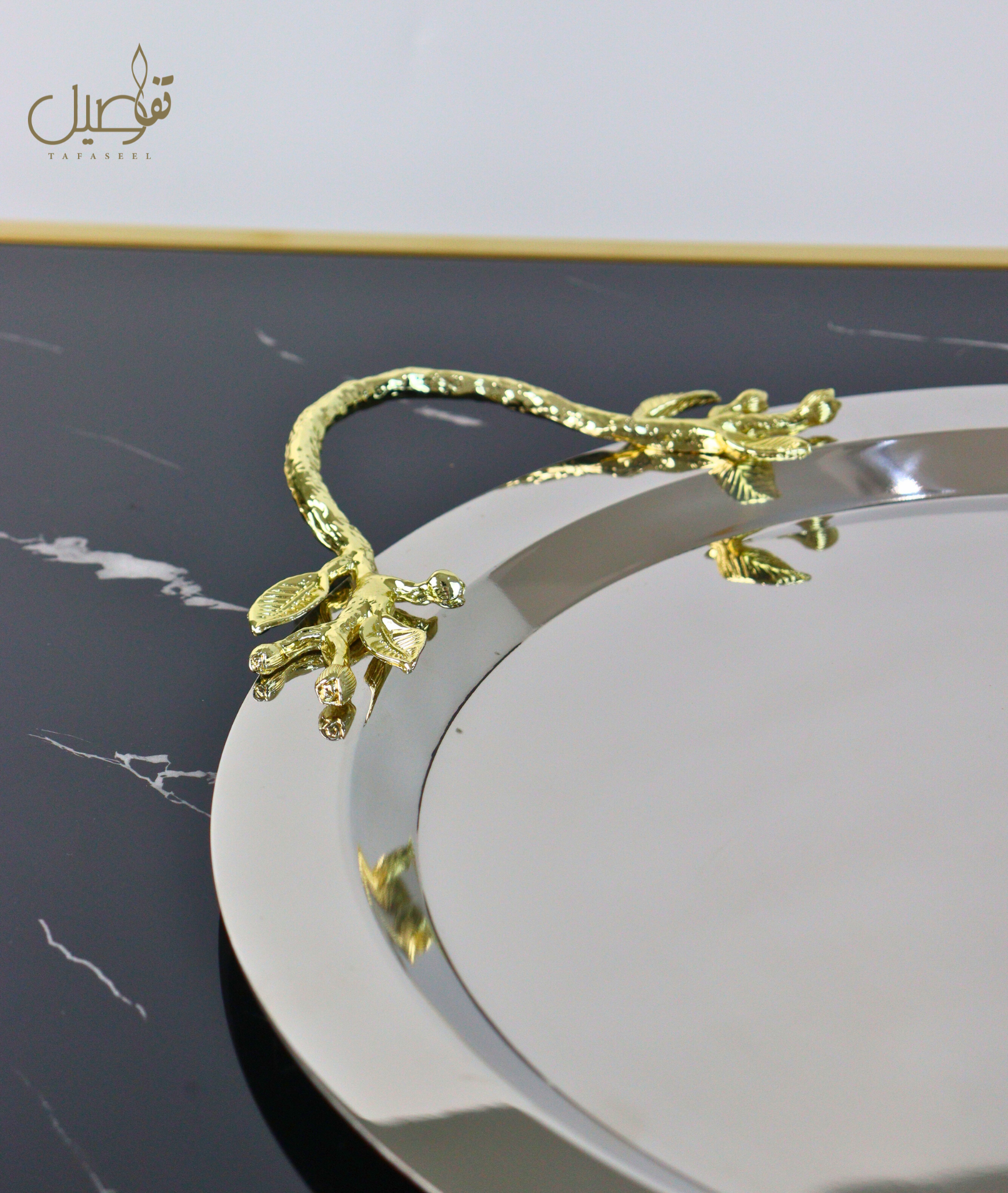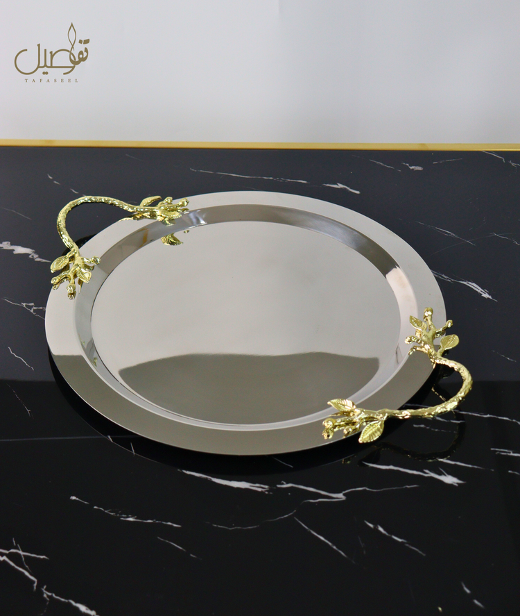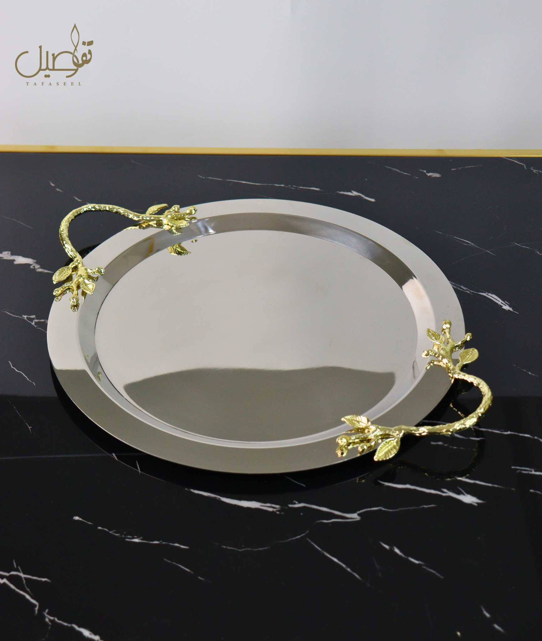 Ce magnifique plateau en argent allie style et durabilité. Conçu en acier inoxydable haut de gamme, il est idéal pour sublimer vos présentations et impressionner vos invités. 🥂✨ Parfait pour toutes les occasions ! traduire en arabe