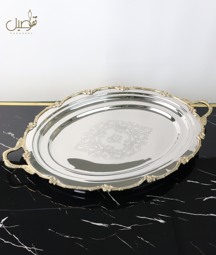 Découvrez notre plateau ovale en acier inoxydable de luxe, l’allié parfait pour sublimer vos tables et vos réceptions.