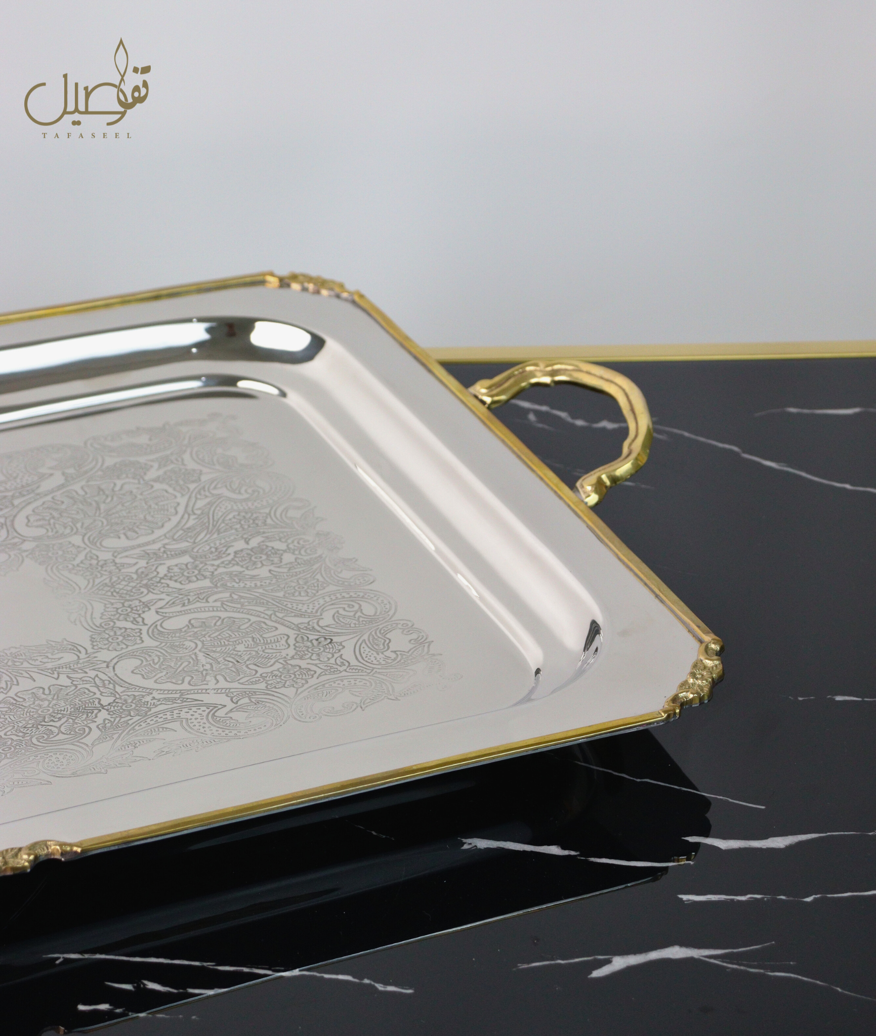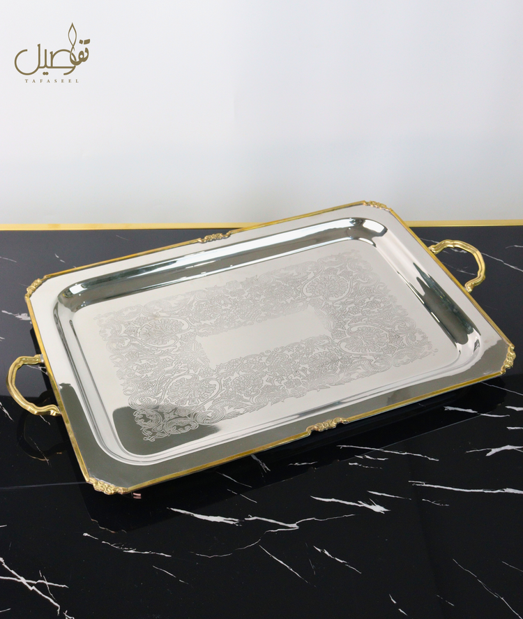 Offrez à vos réceptions une touche d’exception avec notre plateau de service en acier inoxydable de luxe, fait main avec un savoir-faire artisanal unique.