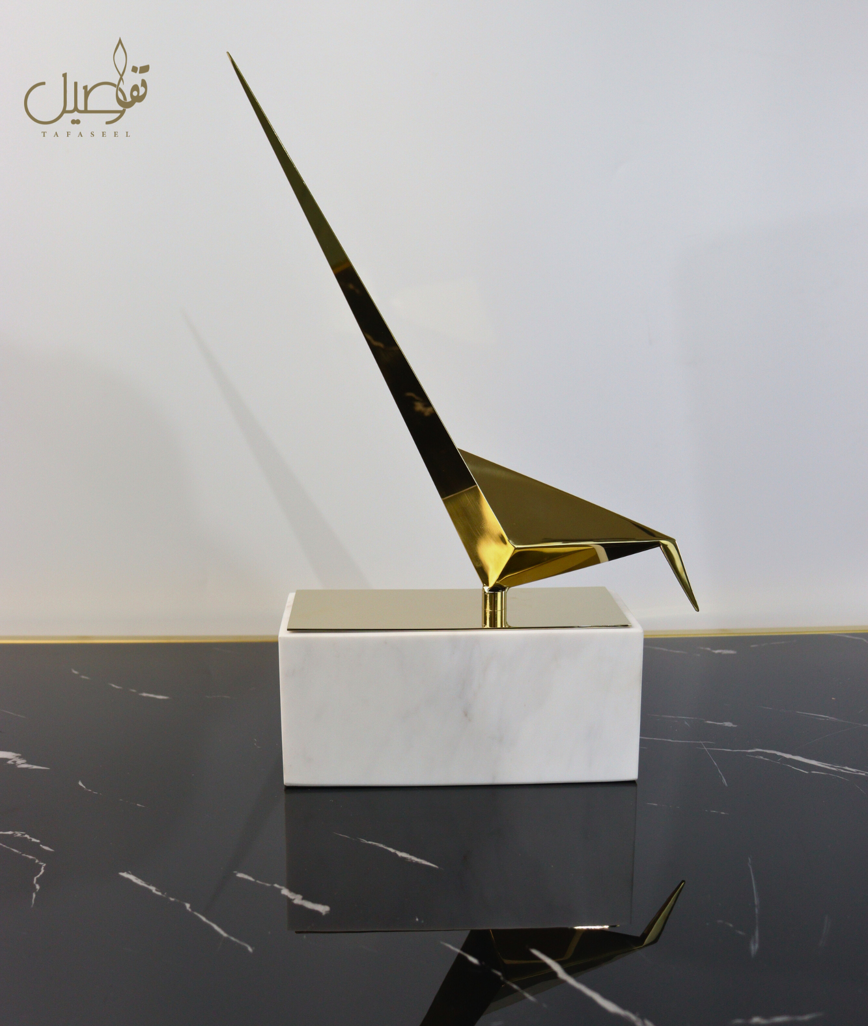 Cette sculpture d'oiseau apporte une touche vraiment spéciale à votre intérieur. Sculpture en laiton avec une finition polie et socle en marbre blanc.